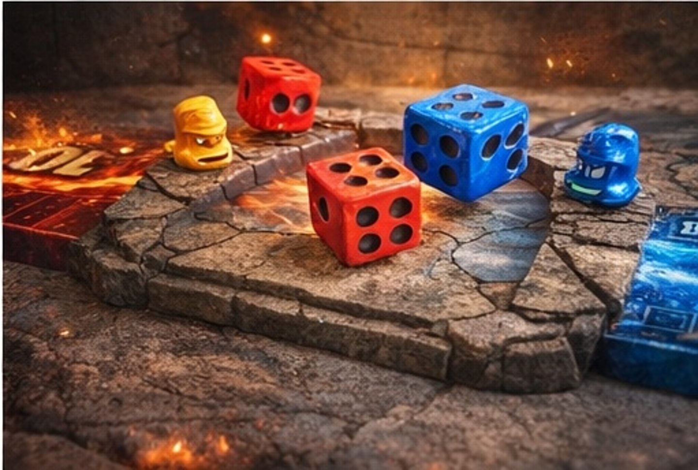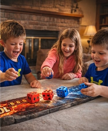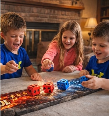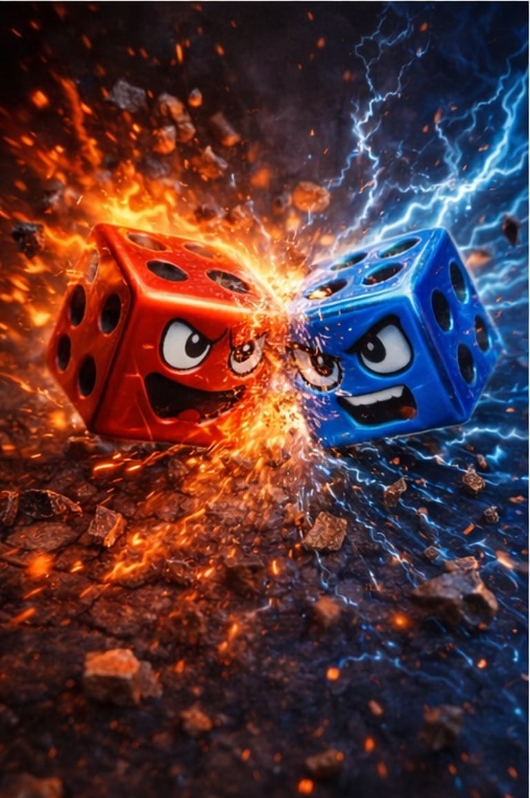 Battle DIce bring a thrilling clash of chunky, glossy dice in a fiery red versus icy blue showdown.