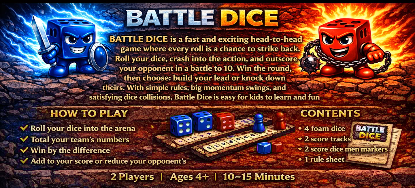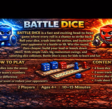 Fast-paced and easy to learn, Battle Dice is perfect for family game nights or intense duels in a fantasy battle arena.